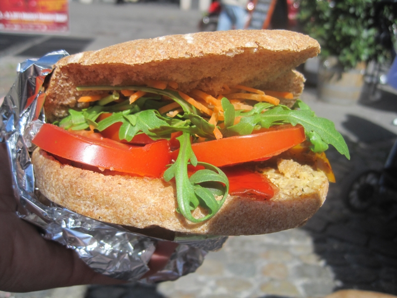 Auf Wunsch gibts frisch zubereitete vegane Sandwich, Sojamilch Cafe usw.