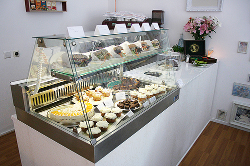 Wir waren Anfang des Monats da und haben uns spätestens dann in den laden verliebt, als unsere Kuchen in eine süße, weiße Pappschachtel gepackt wurden, die aussah wie ein Häusschen ♥. (Ooh, ich mochte sogar die kleine Holzgabel, mit sowas bin ich gut zu beeindrucken.)