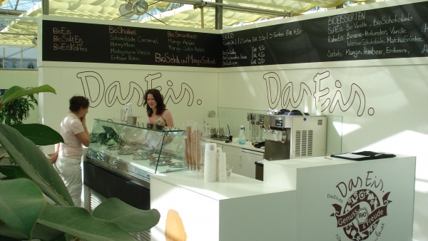 OHNE JEGLICHE FARBSTOFFE - ATOMSTROMFREI HERGESTELLT - FRISCHE BIO-MILCH - SAISONALE BIO-ZUTATEN - GOURMET BIO SOFT SORBET - - BIO-WAFFEL - KOMPOSTIERBARER EINWEGBECHER - KLIMANEUTRALER - LÖFFEL - UNGEBLEICHTE SERVIETTE - MEHRWEGGLAS - FREUNDLICHES LÄCHELN