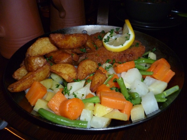 - SOJATELLER (Sojawuerfel mit Paprika, Pilzen und Zwiebeln in Chillisauce, dazu Wedges) 14,80 Silberlinge (Euro)