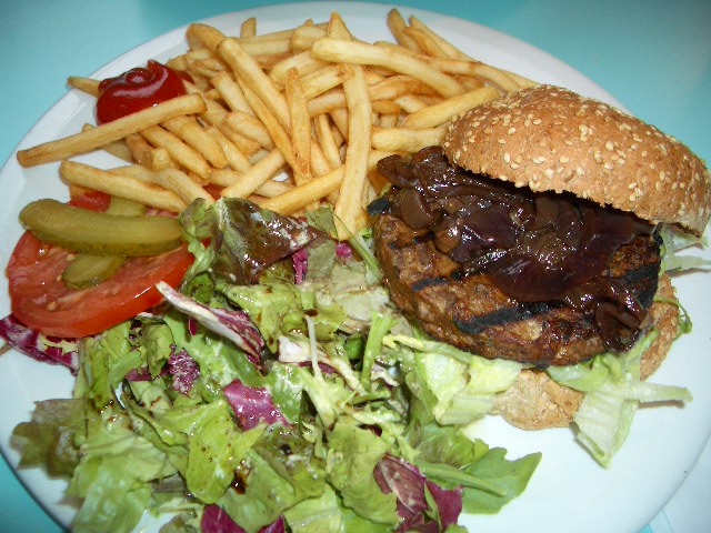 Trendy veggie place. Very spacy and comfortable. Interesting, american-diner style veggie food (burgers, sandwiches, salads). Vegan items clearly marked.