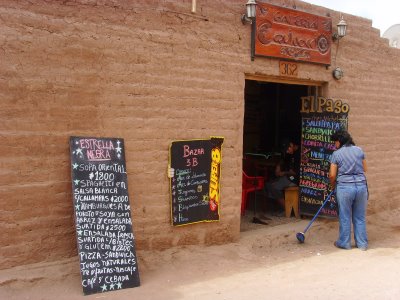 Das Restaurant befindet sich innerhalb eines Gebäudes mit verschiedenen Läden, geradeaus und hinten rechts.