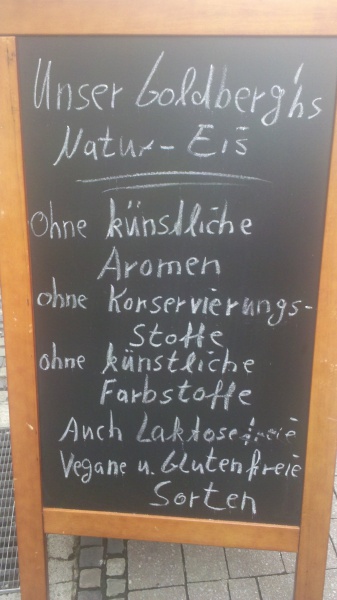 Eiscafé in der Fußgängerzone mit einem großen Angebot an "Natur-Eis", d.h. hergestellt ohne Verwendung von künstlichen Aromen, Konservierungsstoffe und künstlichen Farbstoffen. Fast alle Fruchteissorten sind vegan; die MitarbeiterInnen geben gern Auskunft! Leider sind die Waffelhörnchen unvegan, aber es gibt natürlich auch Pappbecher für die Eiskugeln. Tipp: Das Aprikoseneis ist sehr lecker!