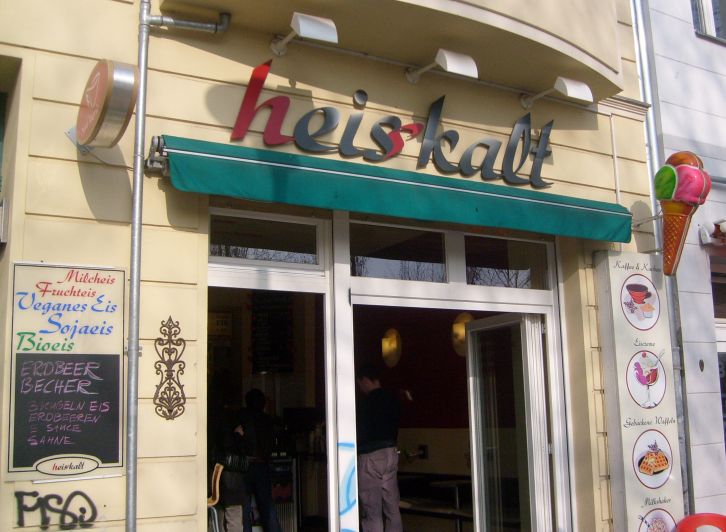 Nette kleine Eisdiele mit Bio-, Frucht- und Sojaeissorten.