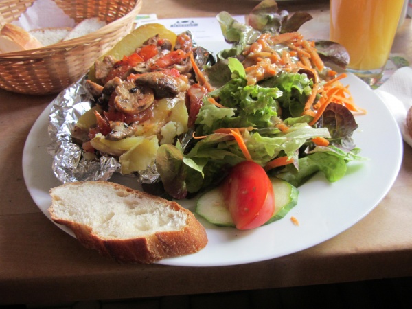 • Bratkartoffeln, Salatgarnitur (mit gebratenen Champignons STATT Spiegeleier!) (*V)