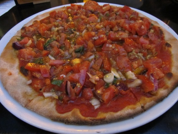 * Pizza Laura ohne Käse (Tomatenwürfel kalt, Basilikum, Zwiebeln, Knoblauch)