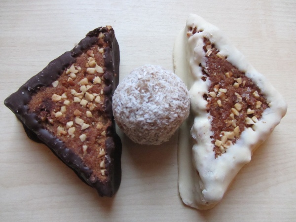 In der Bäckerei gibt es dunkle und helle vegane Nussecken.