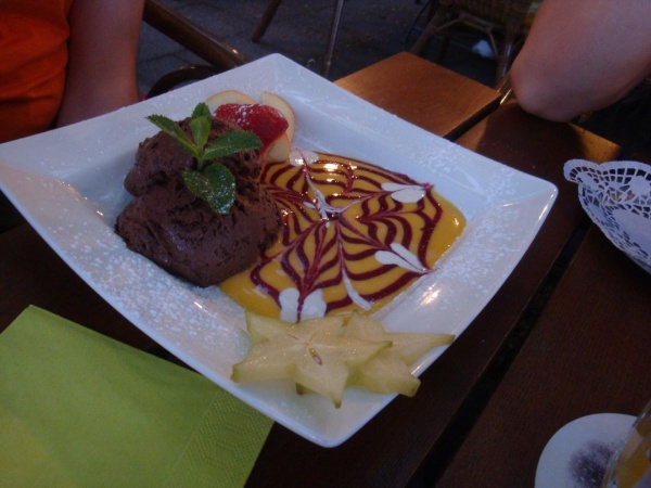 Am Anfang denkt man immer: So teuer und davon wird man doch nicht satt. Tatsache ist: Es ist sehr teuer (Hauptgerichte zwischen 6 und 19 Euro), aber es ist auch sehr sättigend und qualitativ sehr hochwertig. DIe Moussee au Chocolat beispielsweise mit einem Mango-Fruchtspiegel, den man nicht zerstören möchte. Schmeckt aber auch unheimlich lecker und lohnt sich ausprobiert zu haben.