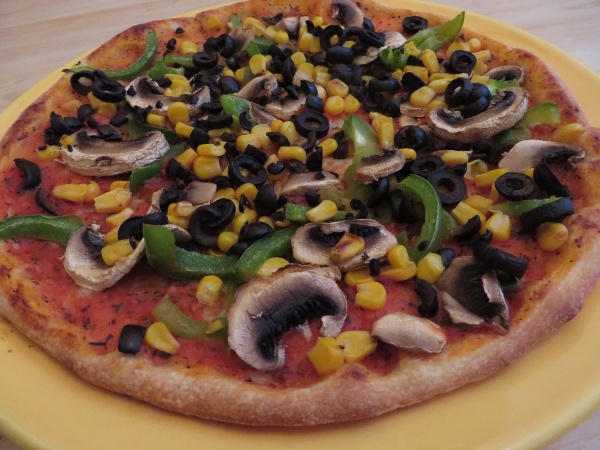 19. Vegetarisch (mit frischen Champignons, Mais, Oliven und frischer Paprika)