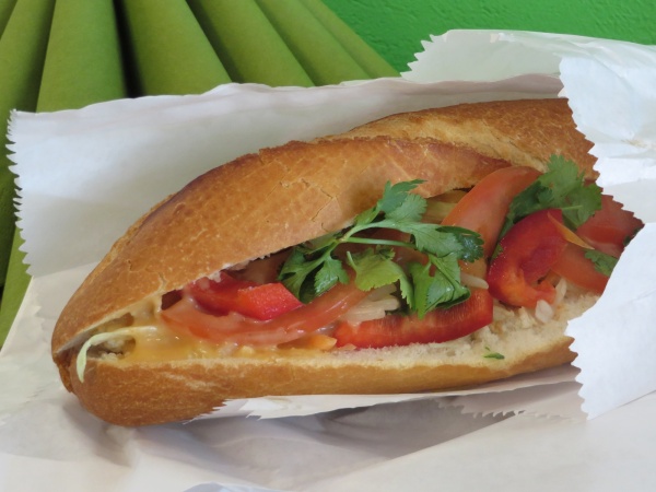 Das vegetarische vietnamesische Sandwich kann vegan bestellt werden. Bei den anderen Speisen noch nachfragen.