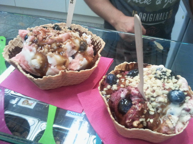Amerikanisches Konzept mit dem Cold Stone! Wähle Dein Eis aus, Zutaten, wie Nüsse, vegane Süßigkeiten bekannter Marken, frische Früchte, Brause, Schokolade etc. Als topping gibt es verschiedene Saucen zur Auswahl!